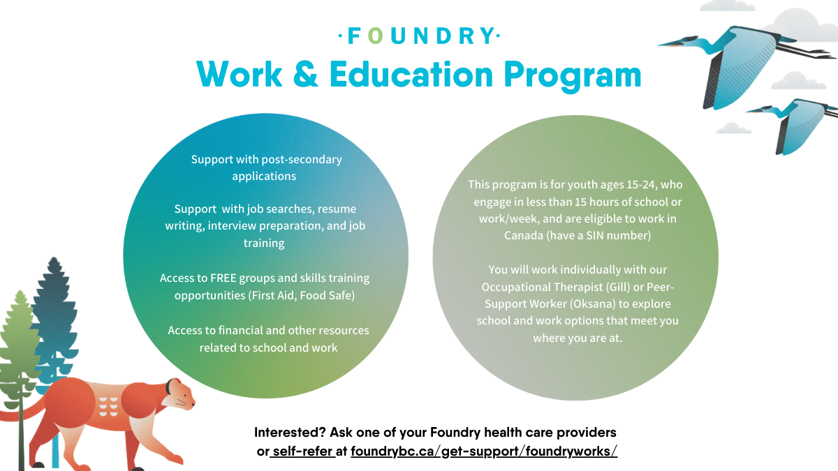 If you are interested in practicum opportunities with Foundry North Shore, please visit studentpractice.vch.ca or email Placements@vch.ca.